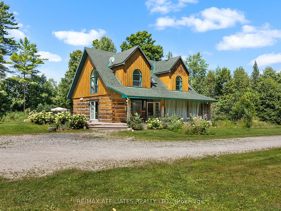 Welcome to a truly stunning log home that has undergone an impressive renovations, Seamlessly blending rustic charm with modern luxury. Set on 8.6 acres of peaceful, private land, this property offers a lifestyle of tranquility and beauty, just minutes from Perth, with easy access to Carleton Place, Ottawa, and a short drive to the Mississippi River. As you drive in, you'll immediately feel like you've entered your own secluded world. Surrounded by lush gardens, outdoor seating areas, and private walking trails leading to the surrounding farm fields, this property is the perfect escape from the everyday. From a thriving food forest to a flourishing cut-flower farm, where you will find apple trees, blue berries, strawberries, vineyard , English roses, specialty peonies and English garden roses-- which offers beauty and opportunity for business. Step into the screened-in front porch, ideal for enjoying your morning coffee or a quiet evening glass of wine while soaking in the sights and sounds of nature. Inside, the home will truly WOW you. Bright, airy, and finished with incredible attention to detail, every inch reflects quality and care. The chefs kitchen is a showstopper, featuring Italian marble countertops, top-of-the-line appliances, and hardware imported from England, a space where cooking becomes an experience. Upstairs, you'll find three spacious and uniquely designed bedrooms, each full of character, charm, and warm natural textures, making them perfect for family, guests, or creative spaces. This home is magical from the moment you arrive.