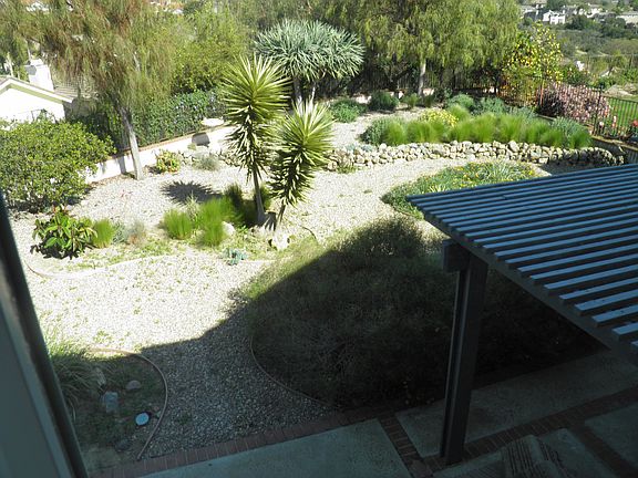 Rare opportunity in highly desirable secluded Quail Gardens Neighborhood. Major intersection Saxony from La Costa. Quiet cul-de-sac with park, playground, and dog-friendly hiking within 5-minute walk. Ideal location for Encinitas, Leucadia and Carlsbad beaches, El Camino Real shopping corridor from La Costa to Encinitas Blvd., Encinitas Ranch Golf Course, easy access to 101 and I-5. Largest backyard in the neighborhood. Stunning drought-tolerant landscaping on drip irrigation and sweeping 180 degree Eastward views from every window. Light, bright and airy throughout. Vaulted ceilings, generous windows, West-facing. Totally remodeled kitchen in 2015 with “quiet-close” cabinets, granite countertops, deep pantry and high-end Bosch dishwasher. Stainless steel appliances. Gas fireplace. New double-pane windows throughout, whisper quiet automatic garage door, GFI electrical upgrades in kitchen. Downstairs - recessed lighting on dimmers and indestructible custom treated cement floors. Upstairs - new carpet and paint, remodeled master bath with tile shower and over-sized tub, walk-in master closets with custom shelving. Over-sized 2-car garage with W/D hookups and built-in storage units, and plenty of street parking for residents and guests. Great neighbors on all sides and move-in ready!