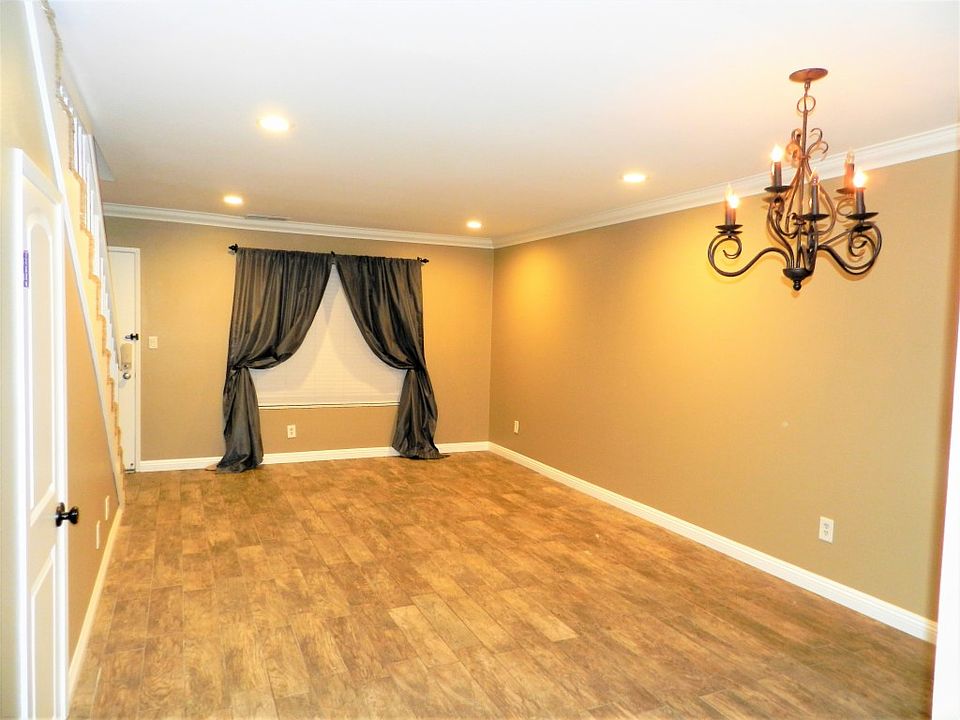 For lease, Rancho P V townhome offers, wood design tile flooring throughout living, dining and kitchen, brand new wall to wall carpeting on stairs, hall and both bedrooms. Freshly painted interior, New vinyl double pane windows, smooth ceilings with, ceiling light/fans in both bedrooms. Master bedroom has 2 closets with mirror wardrobe sliding doors. Kitchen offers, stove, microwave, refrigerator, and dishwasher. Double panel doors, brushed nickel door fixtures. Use brick paved private patio yard has gas fire pit, BBQ and private double garage with loads of storage and washer and dryer hook ups. Complex offers gated pool.See photos!!