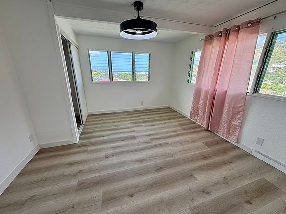 Newly renovated 3 bedroom, 1 bathroom with 1 assigned parking stall in Kalihi Valley! This unit features an open layout with 3 large bedrooms and bathroom. Enjoy ocean and mountain views from your bedroom and your own private balcony! Conveniently located near the Likelike Hwy with easy access to the freeway. Electricity, water and sewer included! Minimum 1 year lease required. First month rent and security deposit due upon move in. Pets negotiable with pet fee. Community coin operated laundry available. For questions and showings please contact Temari.