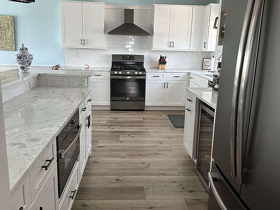 This 3-level home with reverse style living has been completely updated in 2021! New flooring was installed 5/24! There is an elevator as well as 5 bedrooms and 3.5 baths where breathtaking views can be seen from each levels! The main living level on the top floor is an open-concept floor plan that offers a living room with a vaulted ceiling, electric fireplace and large windows, opening up to a large deck with glass railings. The dining area is connected to the kitchen which contains stainless steel appliances, granite countertops, subway tile backsplash, and a breakfast bar. The primary bedroom is off the living room and contains a vaulted ceiling, access to the top level deck, and a private bathroom. The second level contains 4 spacious bedrooms, 1.5 baths, flex space, and a laundry room. The lower level contains a 2 car garage with additional room for storage space. The exterior of the lower level is a great space for entertaining while enjoying beautiful views!
