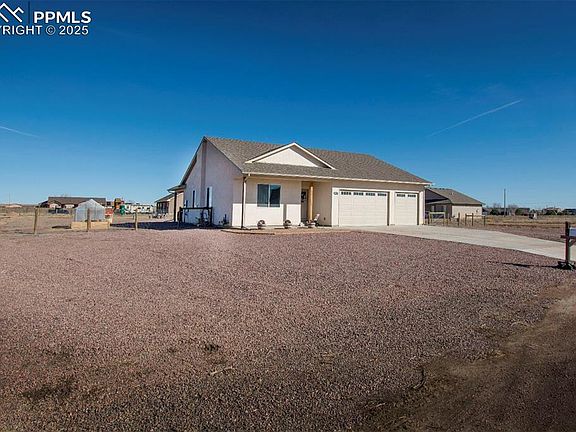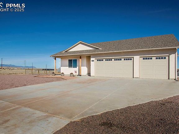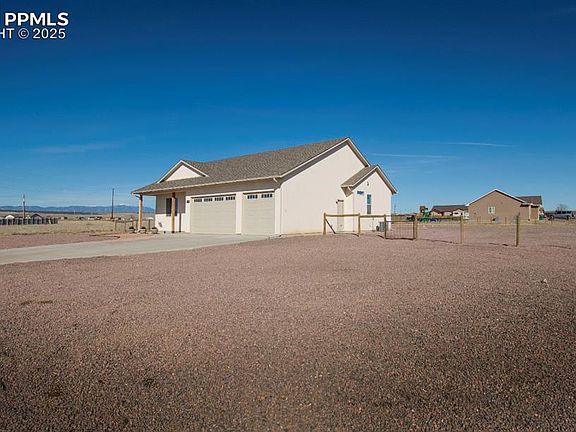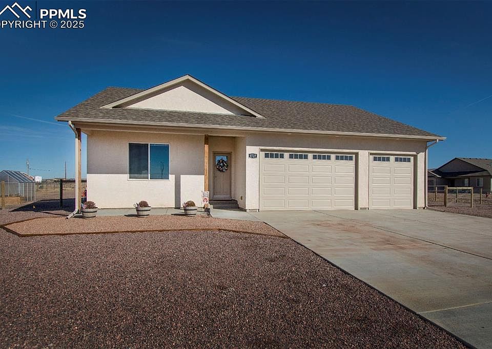 This charming 3-bedroom, 2-bathroom open concept home with vaulted ceilings offers a perfect blend of comfort and convenience, nestled on a quiet cul-de-sac with stunning mountain views. Situated on a spacious fenced 1-acre lot, this property features a beautifully updated kitchen with modern appliances, gorgeous laminate flooring throughout, stylish, upgraded lighting and as if that was not enough you have soft-closing cabinets and doors, recessed lighting, quartz countertops and a pantry. It also comes with a radon mitigation system, fireplace and air conditioning. There is ample parking provided by the extended 3-car garage so there’s room for all your vehicles and storage needs as well as space for your boats and R.V’s in the yard Moving outside onto the large, covered patio and a greenhouse, the low-maintenance xeriscaping enhances the natural beauty of the landscape and offers an ideal setup for those who appreciate minimal upkeep. This property also welcomes horses and chickens, making it perfect for animal enthusiasts or those interested in a mini-homestead lifestyle. Located just 20 minutes from the lake and Riverwalk, 15 minutes from the race track and only 30 minutes from Fort Carson, this home combines peaceful country living with convenient access to nearby amenities. Enjoy mountain views, open space, and a lifestyle that blends rural charm with modern updates.