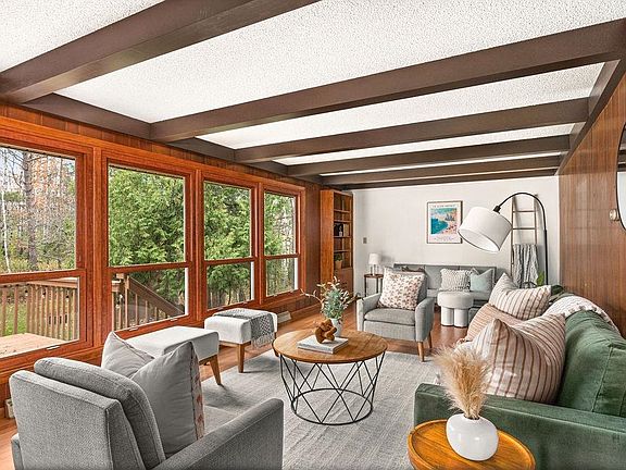 - Description: Daylight Windows, Gas Fireplace, dry Bar and real wood paneling.