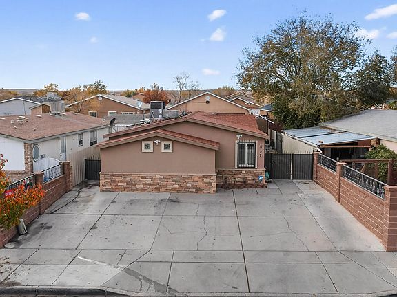 Step into this beautifully reimagined 4-bed, 2-bath gem in the coveted Southwest Heights of Albuquerque. Every inch has been renewed--wood-look tile, gleaming granite, new cabinetry, and stainless steel appliances create a warm, modern feel. Enjoy the comfort of new refrigerated air, a new furnace, water heater, and a newer roof with a transferable warranty. Crown molding adds elegance, while fresh stucco and low-E double-pane windows enhance efficiency. The primary suite offers two oversized closets and fully remodeled baths. Outside, the home is surrounded by thoughtful landscaping, concrete walkways, full gating, a detached porch, stuccoed storage, and a fenced dog area. OWNED SOLAR PANELS. Enjoy a no electric bill! A truly turn-key sanctuary waiting to be lived in.