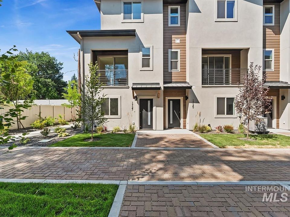 Picture This Life. You're living in a rare corner unit, tucked peacefully into the back of the community—private, quiet, and just steps away from the Boise River Greenbelt and vibrant downtown. Mornings begin with a bike ride or coffee stroll through nearby parks, and evenings are spent on your balcony. Inside, enjoy designer finishes like LVP flooring, floor-to-ceiling soft-close cabinets, and quartz countertops. A main-level bedroom and full bath are perfect for guests or a home office. Entertain in the spacious great room with friends. Your third-floor retreat features a spa-like tiled shower, dual vanities, and a peaceful primary suite. Complete with an attached 1-car garage and zero hassle lifestyle. This home is perfect for first-time buyers, savvy investors, or anyone craving a lock-and-leave lifestyle. Near Micron, the airport, BSU, and more! Schedule your showing today, and ask about our other models available. Only 2 left of this model, so don't miss your chance to love where you live!