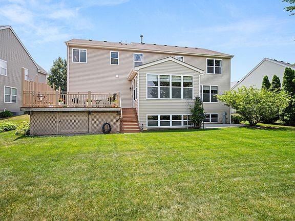 WATER VIEW, BEAUTIFUL SUNSETS, AND EARLY IN THE MORNING YOU CAN SIT ON THE BACK DECK AND WATCH THE SUN COME UP OVER THE HOUSE AND APPEAR ON THE WATER. WELCOME TO THIS ONE-OWNER, METICULOUSLY MAINTAINED, SPACIOUS 4 BEDROOM, 2.1 BATH HOME WITH A 3-CAR ATTACHED GARAGE AND EXTRA WIDE CONCRETE DRIVEWAY! Almost 3,000 sq. ft. of living space plus an additional 1,432 sq. ft. of unfinished lookout basement with great views of the yard and pond! From the moment you arrive, you will be impressed with the meticulous detail given to this home. The front walkway is nicely landscaped and full of color! Step inside to be welcomed by the large two-story foyer and beautiful hardwood floors throughout the main level. Separate living room, the perfect place to relax with a good book. Gather your family and friends for a meal in the formal dining room. As you enter the family room open to the eat-in kitchen and sunroom, abundant windows showcase the serene pond views! Sitting in the sunroom, you will feel like you are on vacation every day! The updated eat-in kitchen has newer cabinetry, Quartz counter tops, tiled backsplash, an island with seating, and all stainless steel appliances. Between the kitchen and formal dining room there is a Butler's pantry for extra storage, serving area, or beverage station. Convenient half bath a plus! Completing the main level is a laundry/mud room with porcelain tile, cabinetry, closet, and custom-built hall tree. On the second level you will be welcomed by a landing/loft area overlooking the foyer, which brings you to all the bedrooms. Spacious primary bedroom and bathroom with a large soaking tub, separate shower, two vanities, each with a sink, and a very large walk-in-closet. Three more nice-sized bedrooms, each with its own large closet, and an additional full bath with double sink vanity, complete the second level. Abundant windows, ceiling fans and lights throughout this home! There is plenty of storage space in the lookout basement and it also provides a blank canvas to finish as you wish! Wonderful location close to walking/biking paths, parks, schools, shopping, restaurants, medical facilities, I-88 access and more! Just minutes from downtown Sycamore! THE OWNERS HAVE LOVED, CARED FOR, AND UPDATED THIS HOME. THIS IS AN INVITATION TO MAKE IT YOURS!