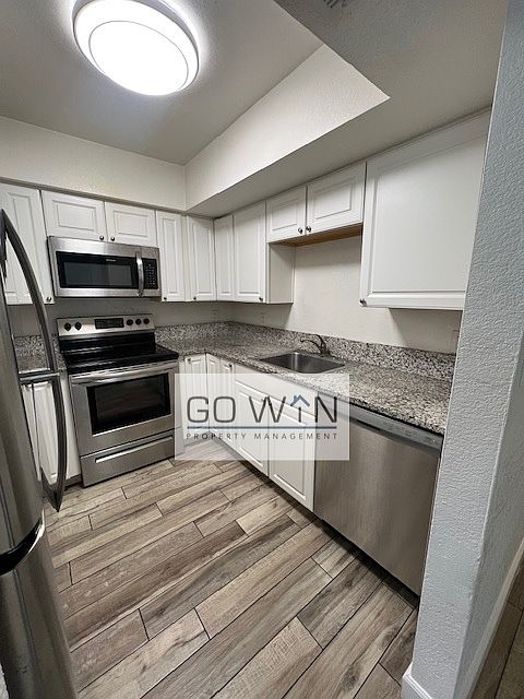 This recently remodeled unit features tile flooring throughout. This unit has a nice, open floor plan. The updated kitchen cabinets are brand new and modern. This unit features granite countertops, new appliances including a dishwasher and washer & dryer in unit! Plenty of parking available. Ready for move in! Tenant is responsible for power, 1.5% admin fee. Owner pays for water/ sewer, trash monthly.