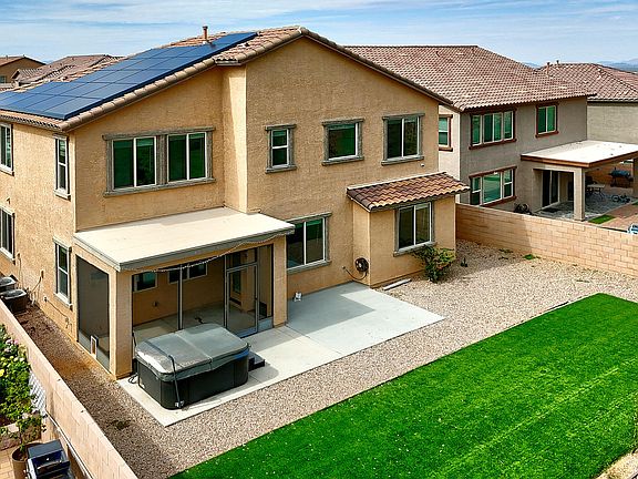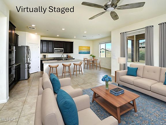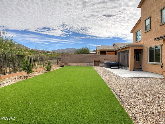 Spacious and beautifully designed home offers room for everyone plus the versatility of Lennar's sought-after Next Gen suite. The downstairs suite features its own private entrance, kitchenette, laundry, patio & yard, perfect for guests, multi-gen living or a home office. The main living areas showcase a stylish kitchen w/gas range, granite counters, rich cabinetry, SS appl incl new fridge & large pantry. Upstairs, the primary suite includes a walk-in shower, dual sinks and generous closet space. Gorgeous backyard w/screened-in patio, artificial turf, hot tub and Santa Rita mountain views. Backs to open common area for added privacy. Whole house water filtration system + Energy-efficient living w/owned solar system.  3-car garage with EV charger complete the package.