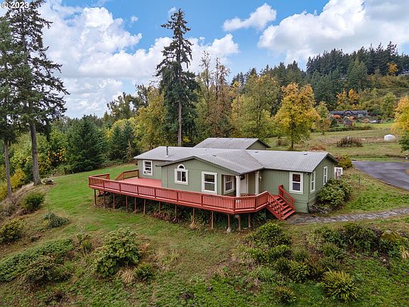 This turn-key home on 7 serene & beautiful acres is everything you've been hoping for! Its location strikes the perfect balance between tranquility & convenience. Whether you're an outdoor enthusiast, a hobbyist, an avid entertainer or simply seeking a serene escape with magnificent scenery, this home is the ideal fit. Enjoy quintessential Pacific NW living from your GIANT DECK with sweeping valley views and a breathtaking backdrop of the iconic Mt. Hood. This spacious home is perfect for those who value comfort and generous living space with a large kitchen and an inviting eating nook where you can enjoy your meals while taking in the stunning vistas. An ample pantry ensures you have plenty of storage space for all your essentials. You'll love the flexibility of having a family room, a living room, AND a den to make all your entertaining dreams come true. Beyond the main residence, the property boasts an array of outdoor amenities that truly set it apart. Step outside and enjoy the bounty of your mature fruit trees. Rest easy with the inclusion of a propane-fueled 22KW generator which ensures a continuous power supply even in challenging weather conditions. Four versatile outbuildings enhance your lifestyle. The detached garage, complete with a dedicated electrical panel and a spacious attached covered storage area, provides ample space for your vehicles. The well-equipped shop features a separate workshop area, a large attached covered space for wood and equipment storage, and an additional bay with an automatic pneumatic auto lift that could also house an RV. The 3rd outbuilding is perfect for storing your boat or recreational toys, offering a secure shelter for your valuable assets. Finally, a woodshed with an attached covered storage area ensures your outdoor tools and equipment stay dry and organized. Private road with fully paved circular driveway. Last, but not least, All appliances are included in the sale.