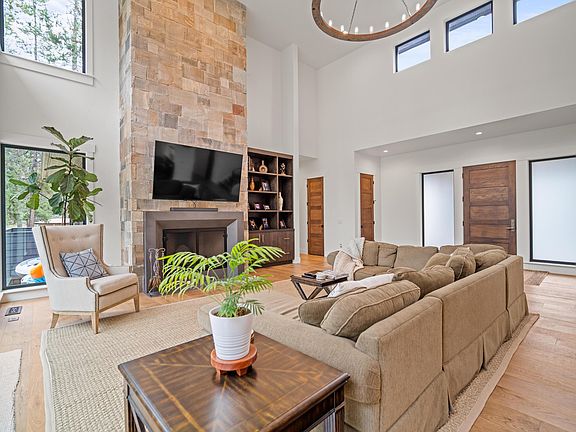 Truly a one-of-a-kind opportunity! This nearly new custom home sits on over 1.5 (+/-) acres of prime Deschutes riverfront, just minutes from Sunriver, Caldera Springs, & Crosswater. The main residence spans nearly 3,300 square feet & boasts a stunning two-story Great Room, a designer kitchen, & a main floor Primary Suite. Additional features include a loft, two guest bedrooms—one of which is ensuite—and an office. The property also includes a beautifully finished, heated 3-bay accessory building/shop with RV doors. Above the shop is a 910 sq. ft. bonus/media room complete with a full bath, kitchenette, and a private sun deck. Enjoy the serene outdoors with a deck off the loft & a large, elevated paver patio extending from the Great Room. An elevated walkway leads to a private dock on the Deschutes River, offering breathtaking Mt. Bachelor views—a perfect spot for a High Desert summer afternoon. Large riverfront parcels with such features and proximity to resort amenities are rare.