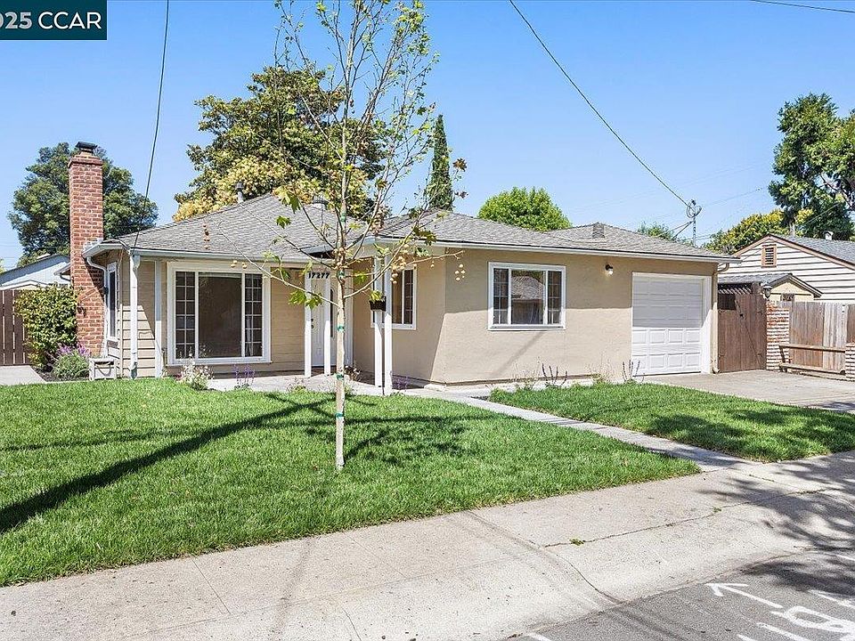Welcome to this charming 4-bedroom, single-family home in the heart of San Lorenzo Village, spanning 1,211 square feet. This move-in-ready residence boasts an open floor plan w/ a kitchen that flows seamlessly into the living room, perfect for entertaining. Large windows flood the home w/ natural light, complementing the freshly painted interior & central heating & AC for year-round comfort. The kitchen features ample storage, generous counter space, a new dishwasher, & a skylight that enhances the bright, airy atmosphere. The living room offers a cozy fireplace w/ a mantle & recessed lighting w/ dimmers, also featured in the kitchen for customizable ambiance. The updated bathroom includes a new sink vanity w/ storage, a spacious mirrored medicine cabinet, a new light fixture, a ventilation fan, & a newly reglazed bathtub. Outside, enjoy a large backyard w/ a separate storage shed, new lawns, & landscaping in both front and back yards, plus a new automatic sprinkler and water drip system for easy maintenance. The home also includes a one-car garage w/ an automatic door opener & a washer and dryer for added convenience. Centrally located near local schools, this San Lorenzo Village gem combines modern upgrades with neighborhood charm, it an ideal place to call home.