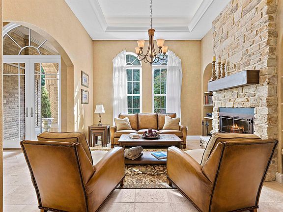Wood-burning fireplaceHot tubTwo pole buildingsCustom pool with waterfallsDouble ovensOpen floor planElectrically operated gated entrance