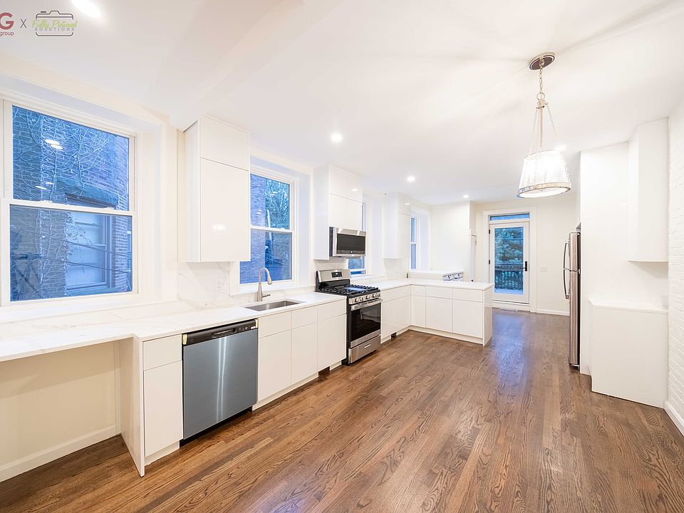 This stunning, fully renovated single-family brownstone offers four spacious bedrooms, three modern bathrooms, and three full levels of living space plus a completely finished basement with additional living areas and bonus rooms perfect for a home office, gym, or guest suite.