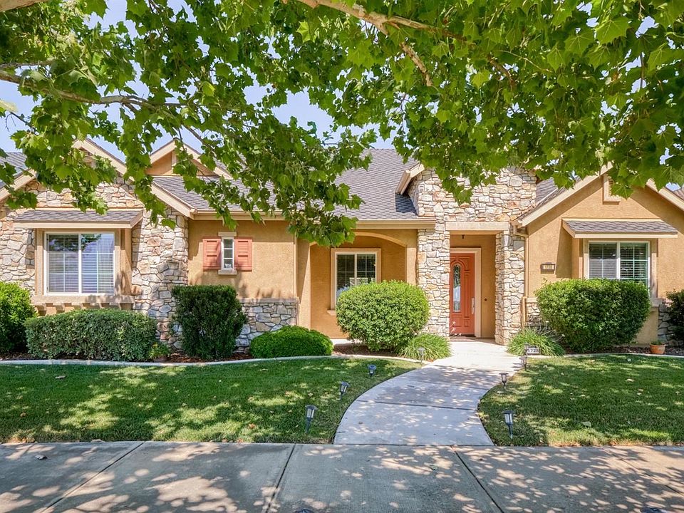 Welcome to this absolutely stunning single story home located on the cobblestone streets of the Cornerstone Development. One of the most desired neighborhoods in Ripon. The open floor plan offers 3 bedrooms, 2 baths with a den for an option to have a 4th bedroom. Elegant foyer with upgraded front entry door, tile floors providing access to the entire house without undue traffic through other rooms. You will notice right away the extravagant high ceilings with upgraded crown molding, tray ceilings, recessed lighting, ceiling fans and fixtures throughout the home. Inviting great room with formal cozy fireplace and surround sound. The great room is open to a dream kitchen where there's no telling what you'll cook up. Upgrades include granite counter tops, tile backsplash, stainless steel appliances with gas cook top, double ovens, upgraded pendant lights over island and beachwood saddle stain cabinets. Separate dining area and breakfast nook leading to beautiful backyard enjoyment & more.