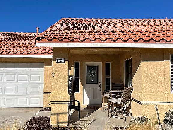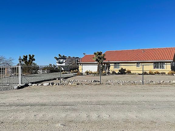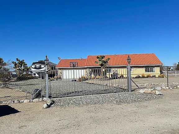 Ranch property which is fully fenced all around and has a gated area for cattle. Beautiful view of the mountains. Features 3 bedrooms and 2 baths. The living room has a wood stone with flagstone enclosure, ceramic tile floors and recessed lights. Built in China hutch. Kitchen has tile counter tops, a dishwasher, stove, refrigerator and a microwave. Master bedroom has a door leading to covered back patio and includes a nice master bathroom. Laundry room includes a sink and is inside the home. Level corner lot completely fenced and cross fenced. There are three corrals with tack and a huge turnout area. Shed with electric. Nice backyard with fruit trees.