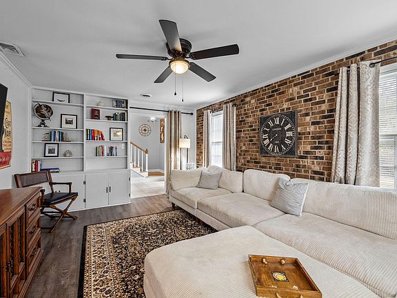 Classic split-level living in sought-after Parkwood! Four bedrooms and three full baths means plenty of space for the whole family. Huge farmhouse style kitchen with recessed lights, quartz counters & shiplap accents. Main level living room with original hardwood floors, plus cozy downstairs den with brick accent walls & built-in bookshelves, offer multiple areas for entertaining & relaxation. The hardwood floors continue through the three bedrooms on the upper level - there's no carpet in the entire house. On the lower level, the fourth bedroom has its own exterior entrance & could be a great office or hobby room. Fully fenced, grassy backyard is complete with huge private deck & storage shed. Much of the furnishings & decor are negotiable - ready for you to move right in! Parkwood has long been one of Durham's favorite neighborhoods, with ponds, trails, playgrounds & a tight-knit sense of community. Ideal location close to schools, RTP, I-40, Southpoint Mall & more!