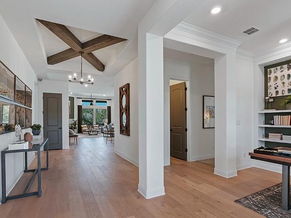 NEW David Weekley Home in Colton 65! Discover the stunning Marigold plan, featuring soaring 12-ft ceilings with transom windows that fill the Living, Dining, and Kitchen with natural light. A stacking sliding glass door opens the Dining area to outdoor living, while vinyl plank flooring flows seamlessly through the main spaces. The Chef’s Kitchen boasts a massive island, ceiling-height cabinetry, quartz countertops, double ovens, and a walk-in Butler’s Pantry with wine fridge. The private Owner’s Retreat offers a tray ceiling, expansive windows, dual closets, and a spa-inspired shower with rain head. Secondary bedrooms each enjoy en-suite baths. Additional highlights include an oversized 4-car garage, tankless water heater, PEKS plumbing, conditioned attic, and a backyard retreat backing to trees and reserve.