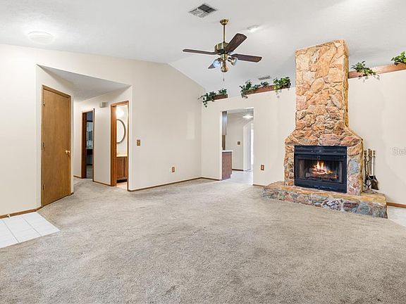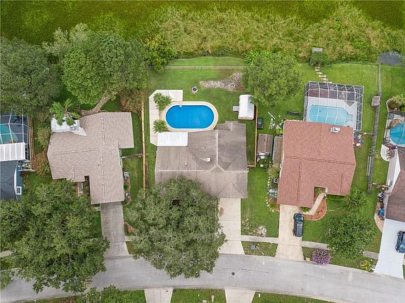 Welcome to this well maintained home located on almost a 1/4 acre lot with no back yard neighbors, no HOA and no CDD! The lush landscaping, mature trees and inviting walkway will lead you to the covered front porch which is perfect for sitting out on those summer nights! Inside you will be greeted with a layout that is perfect for your busy lifestyle with a separate casual living room that has oversized windows allowing for plenty of natural light, a fireplace and vaulted ceilings. Enter the kitchen that has loads of wood cabinetry, stainless steel sink, oversized pantry and immediate access to the dining room for ease of serving! Constructed in 2006 for over $80,000, the family room offers an additional gathering space with newer tile, bay window and direct access into the Florida room (also built in 2006 and also ideal for a dining space) that has a wall of windows, pass thru into kitchen and French doors that access the covered and enclosed lanai which measures 20x10. The back yard is complete with an in ground pool with a brand new liner that comes complete with a warranty to be registered to the Buyer! Palm trees, fenced yard including brand new wood fence and gates, fire pit and shed will complete your own personal oasis all while having no back yard neighbors! The primary bedroom is located at the rear of the home and has vaulted ceilings and an en suite bathroom with wood cabinetry, make up space, separate tub and walk in shower as well as a walk in closet! The secondary bedrooms are generous in size and share the guest bath that is clean as a whistle! There is an additional room inside with double door entry that is perfect for an office with built in shelving! This home truly offers a cozy feel yet with lots of room! There is stained wood trim and doors, all tile has been laid on a diagonal, ceiling fans throughout, new interior paint including living room walls and ceiling, hallway and portions of the family room, primary bathroom and garage, new garbage disposal, new faucet in kitchen, new light in entryway/living room and the AC was installed in 2015, hot water heater in 2014, all garage door hardware has been replaced including hinges, double pane tinted windows throughout and plywood shutters that cover the windows for the majority of the home! Centrally located close to restaurants, shopping, easy access to interstates and minutes to downtown Tampa, close to MacDill AFB, Beaches and more!