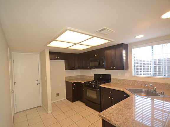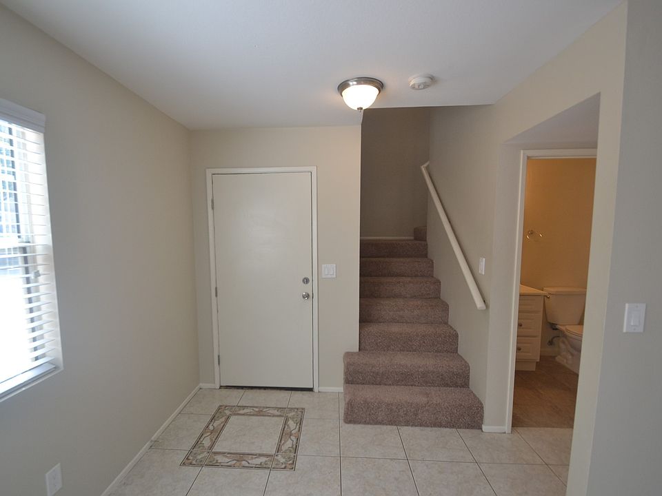 This immaculate two story 3 bedroom, 3 bath home has all the upgrades of a model home and offers over 1,500 square feet of relaxed living space. The open floor plan has a mix of tile and carpet interiors and towering ceilings. The living room has tile floors and picturesque windows to allow for natural lighting. The dining room off the kitchen has a sliding glass door with access to the covered patio and large backyard. The kitchen has tile floors, granite counter tops, contrasting dark wood cabinets with lots of storage space and modern black appliances. The carpeted stairs lead to the large upstairs bedrooms. Bedrooms are comfortable and cozy with plush carpet, ample storage space and oversized windows. Bathrooms are light and bright! Includes an attached 2 car garage. This one is not to be missed!