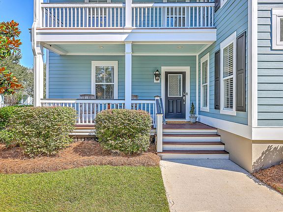 Imagine living in a place that effortlessly combines the charm of historic architecture with the convenience and amenities of modern living. This beautiful two-story Charleston Single home, nestled in the sought-after Carolina Bay community, is now available and ready to welcome its next owners. With its stunning design and prime location, this property has much to offer for discerning buyers.The home boasts a classic exterior characterized by clean lines and a soothing blue facade accented with white trim. As you approach, the meticulously maintained landscape, including a fresh green lawn and mature trees, sets the stage for what lies inside. Four delightful porches provide ideal spots for enjoying Carolina sunrises & sunsets. A detached two-stall garage offers added convenience.Upon entering, you're greeted by an airy and bright space, thanks to large windows that flood the interior with natural light. The open living area seamlessly connects an informal dining space and a well-appointed kitchen, perfect for hosting family gatherings or casual dinners. The kitchen features custom cabinets, honed granite countertops, and stainless-steel appliances. A gas fireplace in the living room with a stunning solid white oak mantle adds warmth and charm. A formal dining room is perfect for festive occasions. The main floor includes a spacious primary bedroom, a rare find, ensuring comfort and ease for any lifestyle. Upstairs, three bedrooms, including a guest suite, offer ample room, while two loft areas can serve as a home office or flex space. Living in Carolina Bay means access to a range of amenities, enhancing your lifestyle. The community offers three pools, one of which is saltwater, playgrounds, and extensive walking trails. It's a hub of activity with events like a vibrant 4th of July parade and food trucks offering community members a chance to connect and celebrate. Situated close to historic Charleston, this property allows you to enjoy the city's rich history and culture. Proximity to beautiful beaches offers the opportunity for regular seaside escapes. The balance of urban excitement and serene relaxation ensures a fulfilling living experience. This home is perfect for those seeking the tranquility of suburban life with access to city amenities. If you're looking to be part of a vibrant community while enjoying a home filled with character, this is your chance. Schedule a viewing today and explore what could be your future home.
