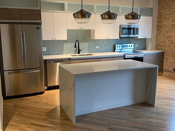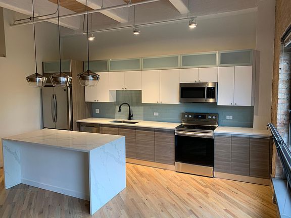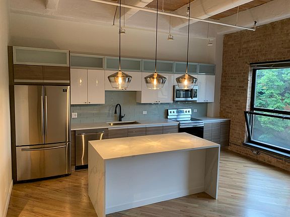 Gorgeous Brick and Timber Loft in Heart of Bucktown, 1 bedroom, 1 bathroom. Right of 606 Trail. Unit was completely renovated with brand new everything and includes one outdoor parking space.This specious one bedroom unit features open floor plane. Bedroom is specious to fit king size bed. Modern bathroom with double vanity and glass enclosed walk in shower. Kitchen includes water fall quartz counter top. Stainless steel appliances, exposed bricks. In unit washer and dryer, closets, custom lighting trough out. Building has large elevator, fitness room, roof top deck with amazing views. steps to Damen blue line stop, 606 trail,shopping and dining. Renter is responsible for electric, tv cable services and internet. There is no security deposit but there is $500 fee nonrefundable. No pat fee. Heating and cooling paid by renter.