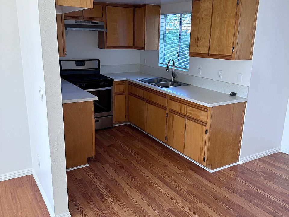 Freshly painted Wood Style flooring 3 story tier Condo (tier 1 is garage, tier 2 is 1/2 bathroom/kitchen/dining/living room, tier 3 is two bedrooms and two full bathrooms.) Each Bedroom has a master bathroom 2 car garage washer/dryer hook ups in unit Owner pays for water and Trash Tenant pays for Electric and Gas All pets have a 50.00 pet rent monthly