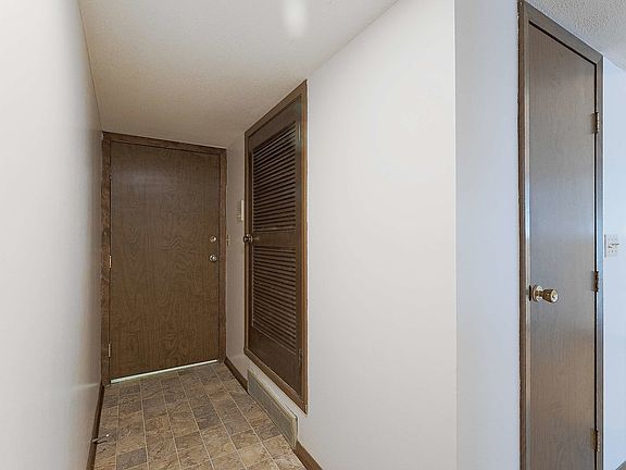 A short hall opens off the other end of the entryway and leads to a linen closet, a full bathroom, and the bedroom, which is set up with two separate closets.