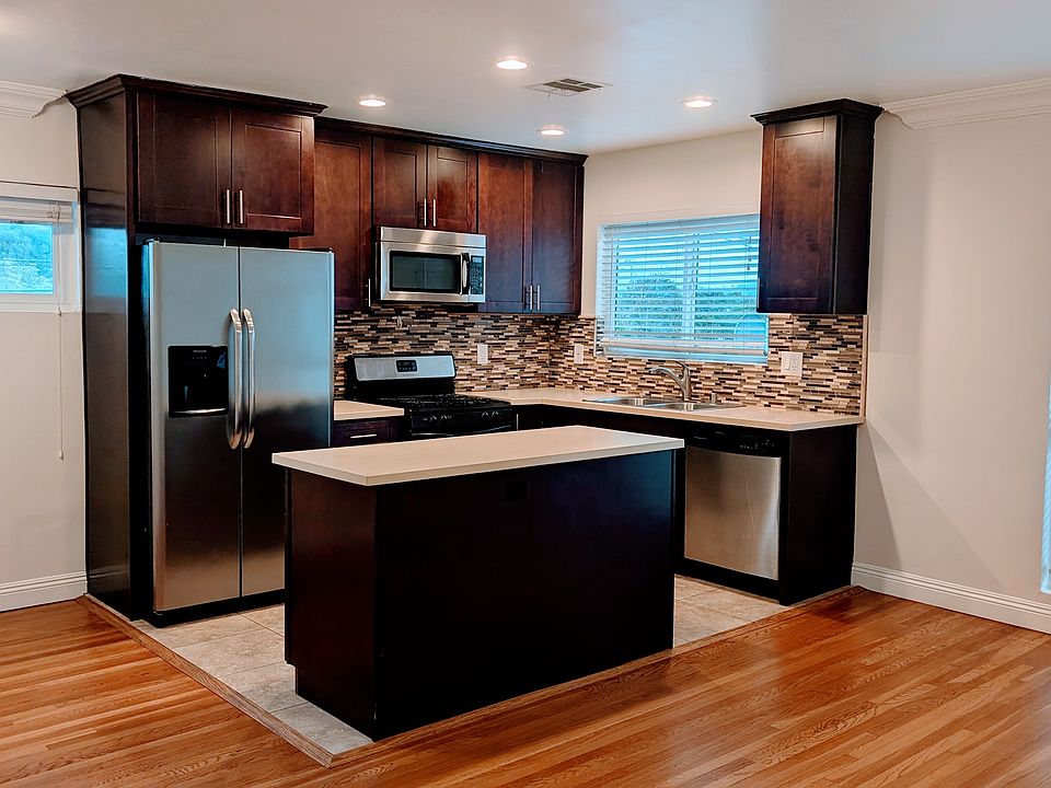 Warm mid century vibesCenter islandRefinished classic oak floorsCentral air and heat