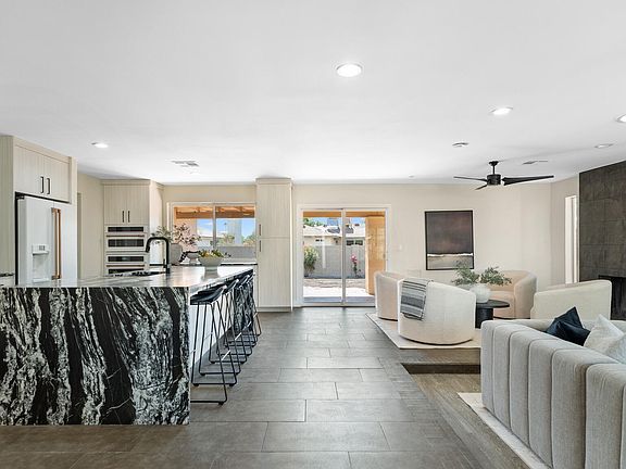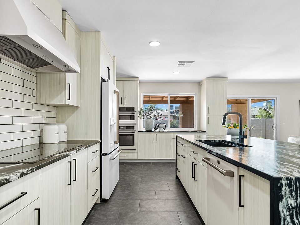 Beautifully remodeled 3-bedroom, 2-bath home in a quiet Mesa neighborhood. The light-filled open layout showcases spacious living areas and a chef-inspired kitchen with premium Café appliances, induction stove, built-in ovens, and stunning leathered soapstone countertops. The elegant primary suite offers a serene retreat, while two additional bedrooms provide flexibility for guests or a home office. The washer and dryer are included for your convenience and an easy move. Enjoy a private backyard designed for Arizona living and perfect for relaxing or entertaining. With refined details, modern upgrades, and close proximity to shopping, dining, and freeway access, this home offers comfort, convenience, and elevated style!
