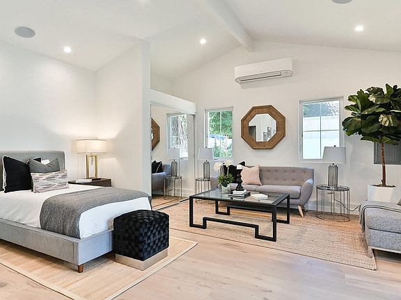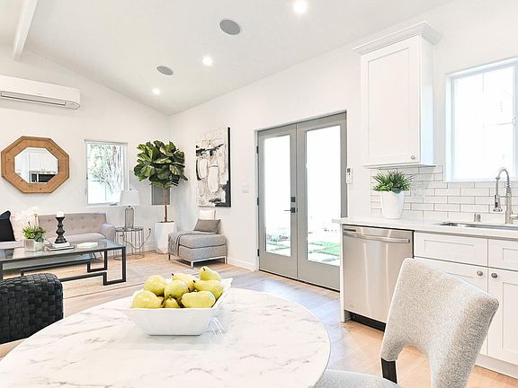 Sophisticated 337 SF in fully approved & permitted ADU w/ own address. It is at the back of 1-Story Spanish style home in Prime Picfair Village! 3 beds - 3 baths in 1600 SF main house. Large grassy yard for playing and completely hedged front yard with custom gates. Designer bathrooms tile and vanities. French doors leading to your hedged front yard. Back bedrooms with French doors leading to the backyard. ADU with pitched ceilings, custom design bathroom, full size kitchen with dishwasher, gas stove, fridge and stackable washer and dryer. Front house is for rent as well for $7000. Street parking only all Utilities are paid by tenant. or we can add water and gas for additional monthly fee. separate electric meter.