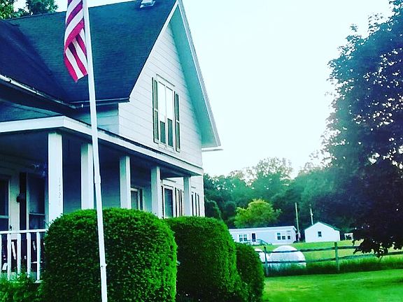 Single family 5 bedroom 2 bath home. Large rooms. Two extra rooms off the kitchen with plenty of cupboards for storage. One room has a stairway to the attic and a door that leads to the side yard and also has a door that leads to the lanai. The other room is on the opposite side of the house and has a doorway to a porch that overlooks the side yard and the garden. Large laundry space with plenty of beautiful cabinets for storage. A large picnic area/lanai that opens up with floor to ceiling screens in Summer and storm windows in winter. The lanai over looks the back yard, beautiful, large garden area and is shaded by lush green trees which make it a perfect place to grill out. A heated green house with windows that open and it’s own water source. A side door with ramp for wheelchair access into a large dining room. Home has a Good size Kitchen and large living room with a doorway that leads to the front porch which is a great place to sit and enjoy the cool evening air. A hallway leads to the hard wood carpeted stairs and another door that opens to the front porch. The hallway also leads to the large downstairs bedroom and a bathroom with another small bedroom/office just off the bathroom. Upstairs is a small knock area and two large bedrooms one with a small and large closet and the other with a walk in closet. One small bedroom with closet. One full bathroom with shower. Real wood accent in all windows and doorways downstairs add a very homey feel. Heated with ornate radiators, fuel oil furnace in excellent condition in the large basement. The house heats well and the insulation is top notch. This home has updated records to show all maintenance has been performed every year and the house is very sound. The roof is only 8 years old and in perfect shape. New chimney with lifetime warranty. The property also has a large two door garage that has a second floor. The large garden is organic and has been used for for decades. The garden has a fence around it and two productive apple trees on the side. Beautiful scenery. This house is amazing and is a must see.