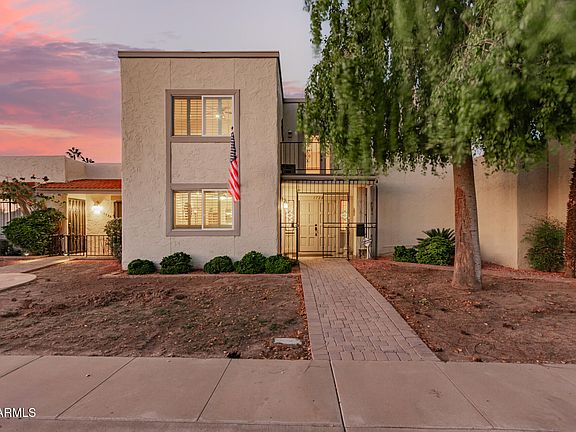 Welcome to this spacious and stylish 4-bedroom, 2.5-bath townhouse, perfectly situated just steps from the community pool and lush green space. Featuring a desirable split-bedroom floor plan, the primary suite is conveniently located on the ground floor and includes a private slider leading to a charming rear patio — ideal for relaxing with a morning coffee or winding down in the evening. The interior boasts beautifully updated bathrooms and a modern kitchen, designed with both aesthetics and functionality in mind. Enjoy generous room sizes, abundant natural light, and excellent storage throughout. Upstairs, a cozy landing opens to a private deck — a perfect retreat for reading or enjoying the outdoors. Located in a well-maintained community offering resort-style amenities, including multiple pools, a spa, clubhouse, and fitness center. All of this in a fabulous Central Phoenix location, close to dining, shopping, entertainment, and top-rated schools. Don't miss your chance to own this move-in-ready gem.