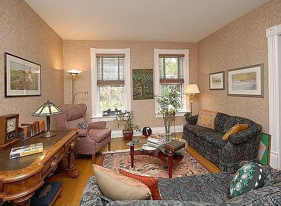 New price! Lovely victorian farmhouse! Living rm, dining rm w/charming built-in, french drs to sun porch, updated kitchen w/maple cabs, ss appliances & new 1/2 bath. Useful built-in desk/office off kitchen. 4 beds on 2nd flr, large family rm on 3rd floor or future master suite. Large, fenced & very lovely yard-gardeners paradise & lawncare paid this year! 2 car gar. Walk to school, park, el, metra, downtown!
