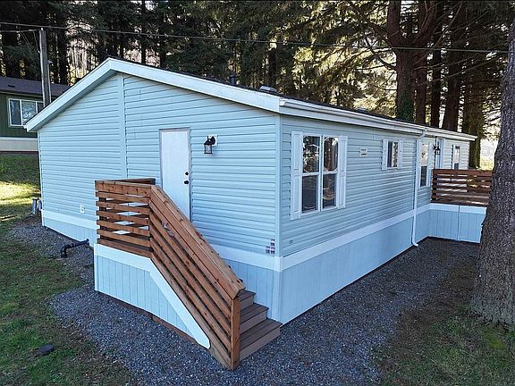 Charming 1512 sq. Ft. 3 bedroom, 2 bath home in serene, tree lined manufactured home community, Pelican Beach Estates, with Ocean Views! Nestled in a 5 acre park like community. This open layout features vaulted ceilings, and a split bedroom floor plan, providing both privacy and flow. The kitchen has ample cabinetry and generous counter space. Separate formal dining area as well as an off the kitchen eating area. The primary suite is a perfect retreat , complete with an en suite featuring a jetted tub and separate shower. New roof, flooring, decks and more. You’ll love the peaceful ambience of the home, complete with front and back deck, perfect for outdoor living, whether it’s enjoying a morning cup of coffee, or watching the sunset. Sat on approximately a quarter acre with ocean views! Amenities include beautiful picnic area among the tall trees and ferns with a beautiful ocean view, private hiking trails, boat and RV storage, open space for outdoor recreation. Just a three minute walk to Pelican State Beach for easy access to coastal beauty. Located on the California-Oregon border, in Smith River CA. with the regions famous banana belt weather for year-round comfort. This is the perfect place to unwind, surrounded by nature. While offering easy access to coastal activities. space rent 785 month includes water, sewer and garbage call Trish (530)3392407