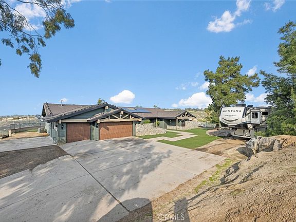 Welcome to this hidden Gem, where luxury meets comfort, and breathtaking views await! Nestled on a little over 2 acres of prime horse property, this four bedroom, three-bath sanctuary is the epitome of modern living. Step inside to discover a vaulted ceiling adorned with a rustic beam and the timeless elegance of real wood flooring that leads you into the dining room. Enjoy the warmth of the wood-burning fireplaces in both the living room and family room, creating the perfect ambiance for gatherings with friends and family. The chef-inspired kitchen boasts granite countertops, stainless steel appliances, and ample space for culinary creations and, a breakfast nook for casual dining with lots of natural light. Relax in the luxurious primary bedroom complete with a cozy wood-burning fireplace, vaulted beamed ceiling, and his and her closets. Indulge in the primary bathroom boasting a large window near the unique bathtub for serene natural light, and a walk in shower. Step outside the primary bedroom slider and immerse yourself in the tranquility of the pool, great for unwinding after a long day. Working from home just got easier with an office nook providing a productive environment. Outside, experience the beauty of turf in both the front and backyard providing easy maintenance and lush greenery year round. This home also offers RV parking, and the jewel of this property is a pool overlooking the city with breathtaking views that will leave you speechless. Whether you're soaking up the sun or stargazing at night, this is where the memories are made. Don't miss out on this rare opportunity.