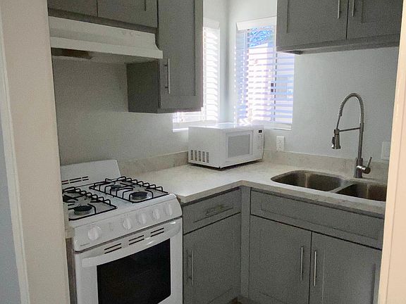 The backhouse has its own entrance along with its own private backyard with lemon, orange, and grapefruit trees. The home includes a new stove, refrigerator, and washer/dryer. The home sits in a calm neighborhood and is perfect for new families. The home has one bedroom and one bathroom. Plenty of open space. First and last month's rent due at signing. Leaser pays for electricity and gas. Water is paid for by owner.