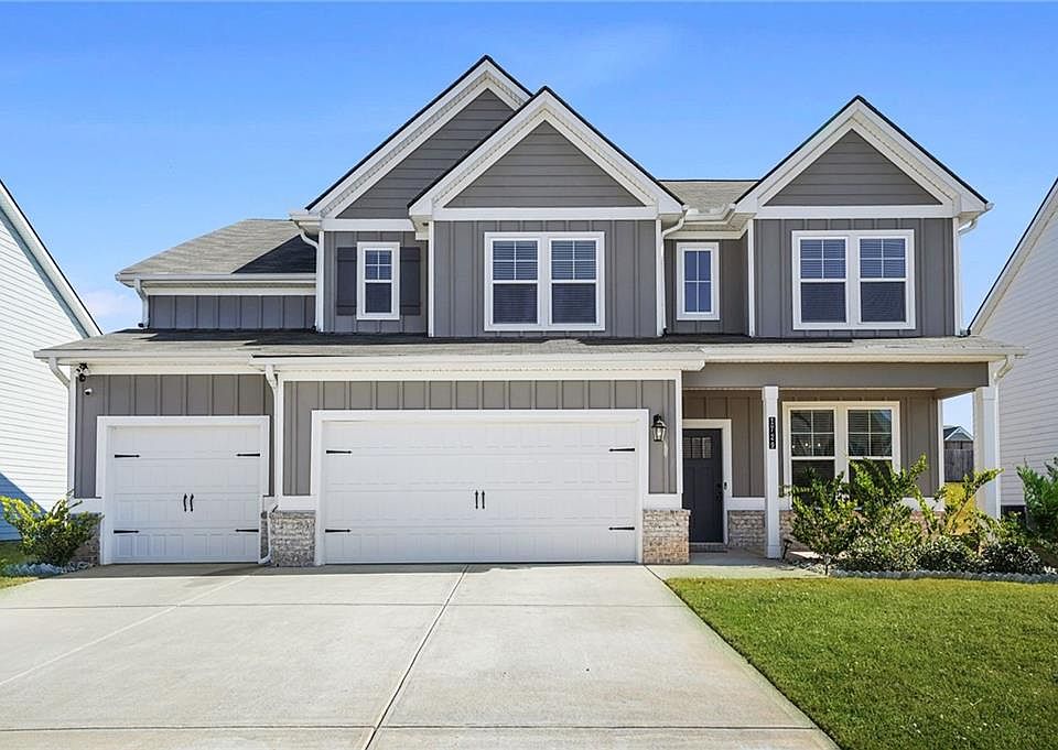This elegant 5-bedroom, 3-bath home welcomes you with a grand foyer featuring luxury vinyl flooring throughout the main level. The formal dining room boasts a coffered ceiling, crown molding, and beautiful shadowbox trim, creating a warm and sophisticated atmosphere. The spacious family room offers an electric fireplace—perfect for relaxing or entertaining guests. The chef-inspired kitchen is a true highlight, featuring quartz countertops, ample cabinetry, stainless steel appliances, and double ovens. A large secondary bedroom and full bathroom on the main level provide comfort and convenience for guests or multi-generational living. Upstairs, you’ll find three generous secondary bedrooms and a luxurious owner’s suite with a spacious bedroom, dual vanities, and a separate ceramic-tiled shower. A 3-car garage completes this impressive home, offering both functionality and style.