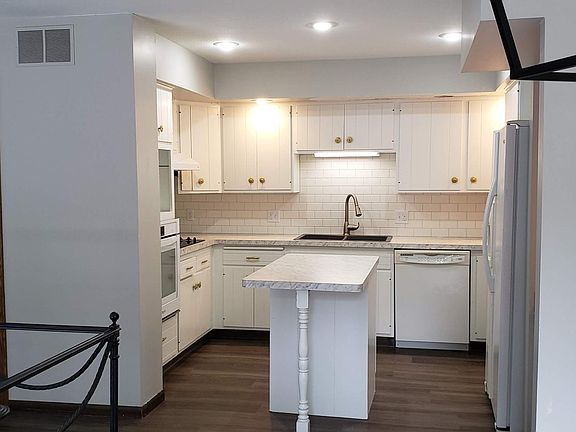 Spacious 2 bedroom apartment, with new flooring and carpet. Large two car garage! Closets are large--so much storage. The fireplace, beamed and vaulted ceiling in living area, custom wrought iron railing make it really beautiful. There is a private, fenced-in yard with a cement patio. Your own dedicated washer and dryer is in the basement. This is a friendly neighborhood with many nice walking opportunities. Many restaurants close by. Tenant pays utilities. There is a large 2 stall garage; one year lease, though 18 month lease is preferred. Snow removal of driveway only is provided (you will need to shovel the walkway). Lawn mowing is provided as well. I will consider a pet; a single pet is an extra $75.00 per month.