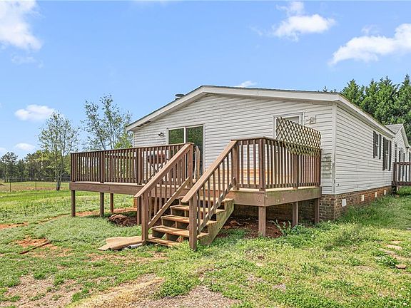 Spacious double wide on a permanent foundation, nestled on a serene 1-acre lot. This 3-bedroom, 2-bathroom home offers generous living space with a separate living room and a formal dining room perfect for entertaining. The cozy den features a fireplace and built-in shelving, flowing seamlessly into the open kitchen. Enjoy quiet mornings or evening gatherings on the back deck overlooking the private yard. A perfect blend of comfort, space, and country charm!