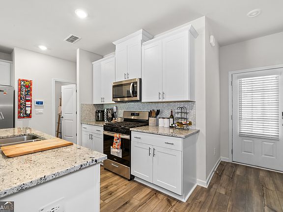 Welcome home to this stylish and energy-efficient 3 bedroom/2.5 bath residence in the vibrant Riverfront community along the Chattahoochee River. Ideally situated just across the river from Atlanta proper, this home offers exceptional walkability to restaurants, scenic trails, and community amenities including a pool and dog park. Inside, the open floorplan showcases white cabinetry, granite countertops, and a spacious island, perfect for entertaining or everyday living. Upstairs, the primary suite features a walk-in closet, dual vanities, and a spa-style shower for a touch of luxury. Enjoy added privacy with a real patio. All appliances and custom blinds are included. This prime location offers intown convenience with Cobb County taxes. Just minutes from I-285, The Battery and Downtown Atlanta. More photos coming soon.