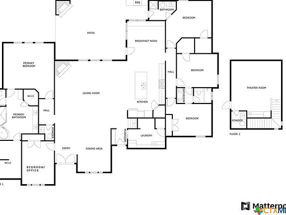 The chef’s kitchen showcases an oversized granite island, gas cooktop, pot filler, double ovens, wine fridge, and walk-in pantry. The private owner’s suite includes spa-style bath and dual closets. Upstairs, enjoy a media room with wet bar, half bath, and surround sound.