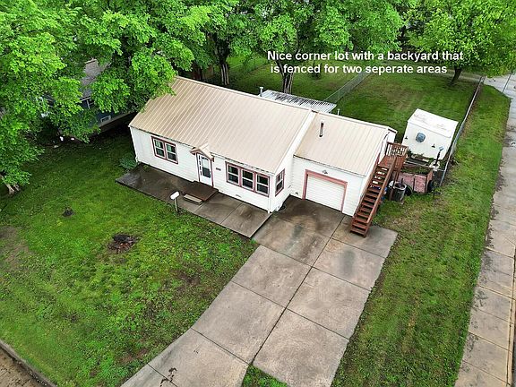 Back on the market! This charming 2-bedroom, 1-bathroom home, located on a corner lot within a desirable older neighborhood, presents a fantastic opportunity to add to your real estate portfolio! Situated on a desirable corner lot in an established neighborhood, this property offers 1,008 sq ft of comfortable living space. Highlights include a convenient 1-car garage with extra storage above, a beautifully fenced backyard perfect for outdoor enjoyment, and a covered patio for relaxing. The home also features a durable metal roof, updated windows, and comes complete with all kitchen appliances This property is being sold "as is / where is" and the seller is considering cash or conventional loans only. Sellers will consider all reasonable offers. Mold has been found in one of the bedrooms and there are some uneven floors.