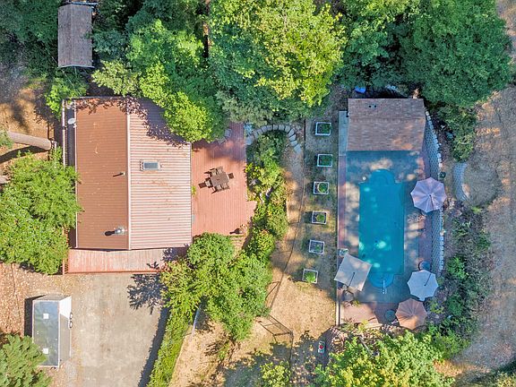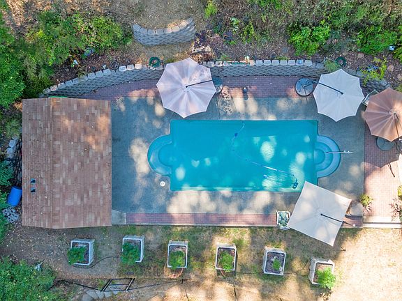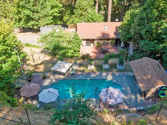 A Little Piece of Paradise.. Perfect vacation home or full time living, this 2 Bd/2 Ba home above a 2-Car garage on 8.36 acres is being offered for sale for the first time and is ready for a new owner's love! Relax or entertain guests on the generous wrap-around deck and beautiful, heated In-Ground Viking Pool (14' x 35' & graduates from 3' 7'' on each end to 5' 7'' in middle. Perfect for playing water volleyball!) + Pool Pump House/Bar (with its own refrigerator, sink and 1/2 bath); Hike and explore your very own wooded hillside. There is a trail most of the way up; Or plan to bring your side by side UTV or ATV! Several outbuildings; Truly remote and private, yet 10 minutes to town! 2 Legal Parcels; 3 APN's... Don't miss this very special property!