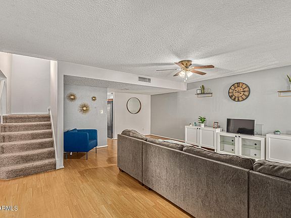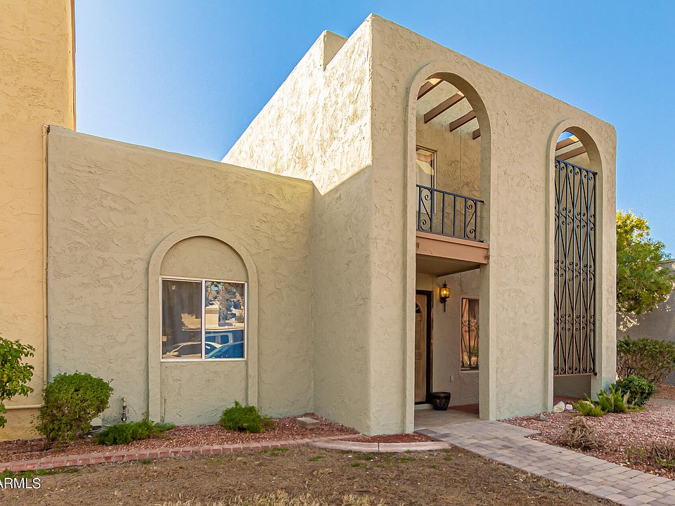 ***CENTRAL PHOENIX CUL-DE-SAC TOWNHOUSE***Checks all the boxes. Great location and excellent floorplan! Island kitchen overlooks dining and covered patio. Light cabinets, beige ceramic tile, laminate wood floor. Master suite upstairs with large walk-in closet, separate vanity, white cabinets w/ corian counter and double sinks. Area for desk. Downstairs bedrooms share hall bathroom with corian countertop and white cabinets. Living room also has space for dining table. Back covered patio and laundry room with full-size washer/dryer. Covered parking. Community pool is fabulous with children's play area. Grassy grounds with wide open spaces. Hard to find 3/2 townhomes especially with center subdivision lot positions and cul-de-sac locations. Enjoy Central Phoenix, close to everything.
