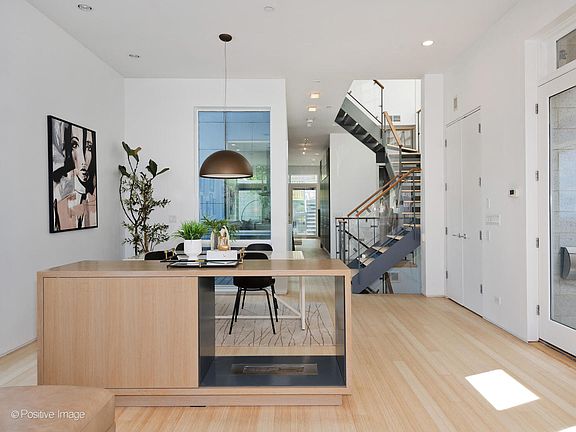 Architect-designed modern masterpiece in the heart of Wicker Park. This sun-drenched 5 bed, 4.1 bath home offers nearly 4,000 sq ft of custom luxury, wrapped in ten distinct outdoor spaces for unmatched indoor-outdoor living. Every detail is elevated: soaring 10'9" ceilings, walls of glass, radiant-heated concrete floors, and warm hardwoods throughout. The chef's kitchen is both sleek and functional, with Italian cabinetry, an oversized island with recycled aluminum countertops, and integrated Miele appliances-including a built-in coffee station and paneled fridge. Just off the kitchen, slide open the doors to a private rooftop deck above the attached two-car garage. The primary suite feels like a boutique hotel: a spa-style bath with dual vanities and a walk-in shower, and a jaw-dropping custom closet with built-in island. Upstairs, a sunlit flex room opens to three rooftop terraces with sweeping city views-perfect for lounging, working, or entertaining. The lower level is built for modern living, featuring radiant heated floors, a spacious media room, custom office space, a sauna, guest suite, and abundant light. Additional highlights include a mudroom entry, second-floor laundry, dual-zone HVAC, and updated decking throughout. Located on a quiet, tree-lined street just steps from Division, Milwaukee, and the Blue Line, this one-of-a-kind home delivers the perfect blend of architectural vision, privacy, and city lifestyle.