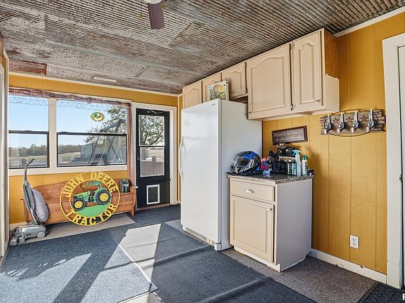 This incredible barn home is nestled on 5 acres with impressive outbuildings, fenced pasture, and great location on paved road. The detached shop has kitchenette, bathroom, and loft for storage. The house has an open concept with magnificent great room with stone fireplace, back up generator, and updated mechanicals. This is a must see. Third bedroom/office is non-conforming.