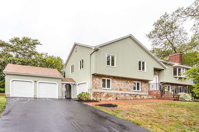 NO EARLY SHOWINGS!! Need that extra space to spread out? Look no further! Remodeled & expanded contemporary split in sought-after TANGLEWOOD ESTATES! HUGE open living space has a gourmet chef's kitchen with five burner gas stove, premium appliances, soft-close cabinetry, custom backsplash, crown molding, and more granite counter space than you can fill! Add three full tiled baths, spa tub and a DREAM dressing room to make mornings a breeze! Solid hardwood flooring throughout, cathedral ceilings with sky lights plus two feature wood-burning stone fireplaces create the perfect blend of classic and modern. Love outdoor entertaining? HUGE yard with deck surrounding the above-ground pool and new Leaf-Guard gutter covers. Over-sized THREE car garages PLUS BONUS private workshop/studio space. Need private office or separate bedroom? It has that too! Lower level above grade for glorious light and features wine fridge & bar for entertaining! First showings at OPEN HOUSES, no exceptions please