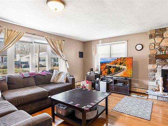 Impeccably maintained and updated, this colonial home exudes charm and elegance. The open floorplan offers a stunning and spacious kitchen that is truly one-of-a-kind. Recently converted from oil to gas heating, this home boasts modern convenience. The oversized kitchen island not only provides ample seating for 7+ people but also features dazzling under cabinet lighting. With newer stainless steel appliances and granite countertops, this kitchen seamlessly flows into the dining area and living room. The living room is adorned with hardwood flooring and a beautiful stone fireplace, adding warmth and character. A large playroom/den in the back of the house and a half bath on the main floor make this home perfect for those who love to entertain. Moving upstairs, you'll find three spacious bedrooms and a large double vanity bathroom. Hardwood flooring continues throughout the home, with tiled bathrooms and a carpeted walkout basement. Speaking of the basement, prepare to be amazed by the exquisitely finished walkout basement, leading to a covered patio and a fully fenced backyard. Don't miss out on this incredible home - guaranteed, you'll fall in love as soon as you step through the front door.