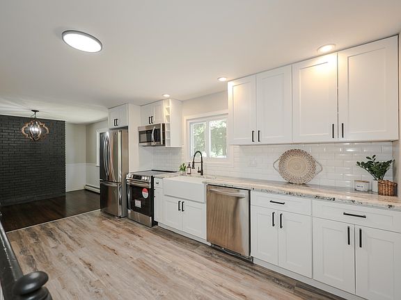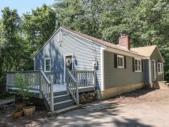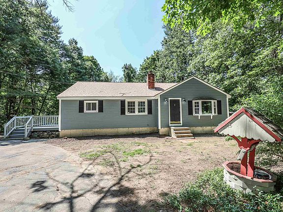 Welcome home to this beautiful Ranch style home that offers many updates and convenient single floor living. Featuring white Shaker style kitchen cabinets, stone counters, stainless steel appliances, and a stylish tile backsplash. The updated bathrooms provide a modern touch, while the primary bedroom boasts its own 1/2 bath. Cozy up on those chilly New England evenings by the fireplace in the spacious living room. The finished basement offers even more space for entertaining or relaxing and has a brick hearth for wood or pellet stove, and a spacious laundry room. Step outside onto the deck and enjoy the peacefulness of your 7+ acre private lot, perfect for outdoor gatherings or simply enjoying nature and enough space to build a large garage; Perfect for in-home business! The paved circular driveway and 2 sheds add convenience to this beautiful property. Siding and some windows are also new. Don't miss out on the opportunity to make this stunning property your new home sweet home! Schedule a showing today before it's too late! Seller is a licensed NH real estate broker.