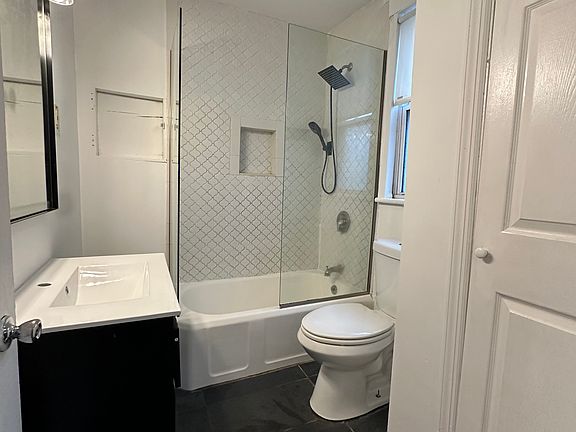 Recently renovated 1st floor apartment featuring a stunning modern kitchen with stainless steel appliances and granite countertops. This spacious home offers 2 bedrooms, a bright living room with central air, and access to a private front porch boasting NYC views. Enjoy a shared backyard perfect for relaxing or entertaining. Nestled in a quiet, desirable neighborhood close to schools, houses of worship, shopping, public transportation, and major highways. A true gem don't miss this opportunity!